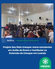No dia 01/10, a Unespar, por meio do projeto Sou Mais Unespar, realizou em Loanda o Aulão Preparatório para o Enem e Vestibular 2026, reunindo estudantes da região em um momento de revisão, dicas e estratégias para as provas.