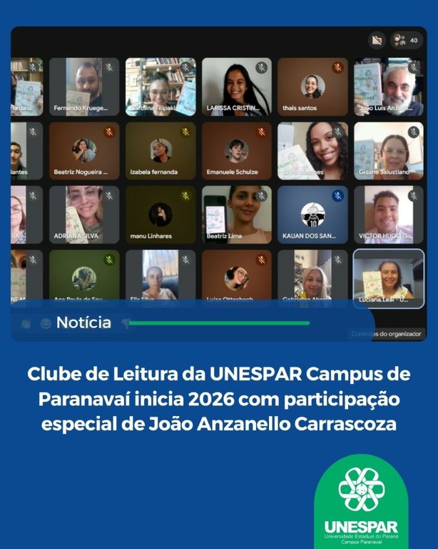 • Clube de Leitura da UNESPAR Campus de Paranavaí inicia 2026 com participação especial de João Anzanello Carrascoza
