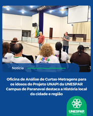 A Universidade Aberta à Terceira Idade (UNAPI), projeto de extensão da UNESPAR Campus de Paranavaí, em parceria com o Curso de História está desenvolvendo por meio do Projeto extensionista Analise Curta-Metragem que discutem a “História de Paranavaí e Região”.