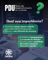 O Plano de Desenvolvimento da Unidade (PDU) se consolida como uma ferramenta essencial para orientar o crescimento institucional de forma organizada, eficiente e alinhada a objetivos claros. Mais do que um instrumento de planejamento, o PDU representa um compromisso com a construção de um futuro sustentável e com resultados concretos.