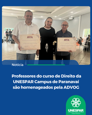 • Professores do curso de Direito da UNESPAR Campus de Paranavaí são homenageados pela ADVOG