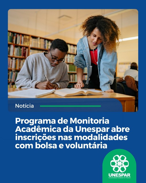 • Programa de Monitoria Acadêmica da Unespar abre inscrições nas modalidades com bolsa e voluntária