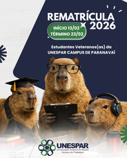 A Universidade Estadual do Paraná (UNESPAR) informa que o período de rematrículas para o ano letivo de 2026 inicia hoje (13/02) e segue até 23/02/2026, conforme a Resolução nº 025/2025 – CEPE/UNESPAR, que aprovou o Calendário Acadêmico Institucional.