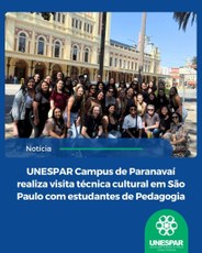 Nos dias 6 e 7 de dezembro, estudantes do Curso de Pedagogia da UNESPAR Campus de Paranavaí, acompanhados por professores do curso, participaram de uma enriquecedora visita técnica em São Paulo, marcada por experiências que integraram arte, cultura e formação docente.