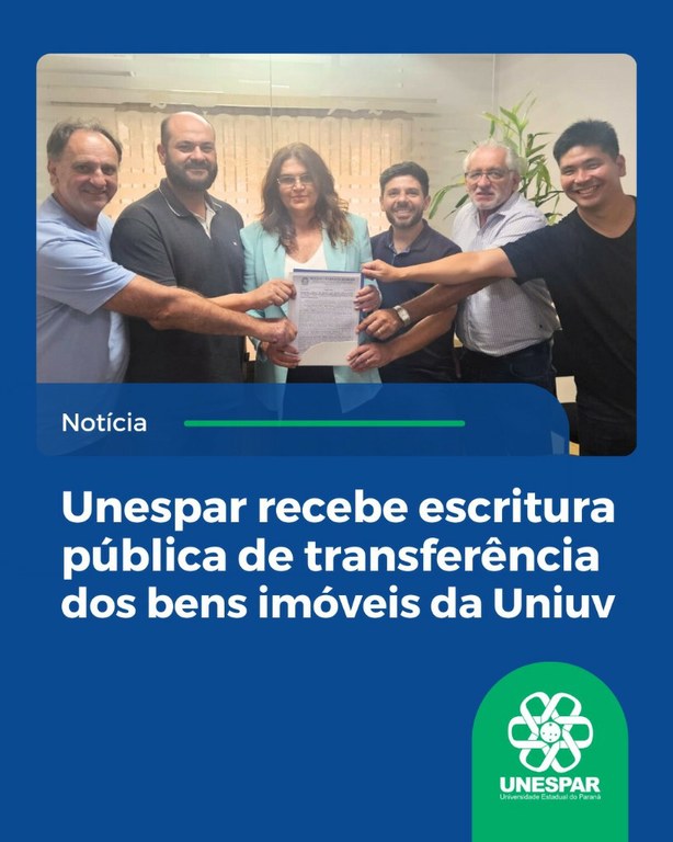 Você está aqui: Página Inicial > NOTICIAS > Lista Notícias Gerais > • UNESPAR recebe escritura pública de transferência dos bens imóveis da UNIUV