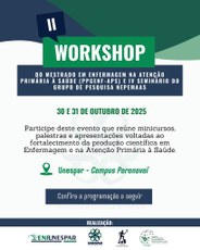 • Vem aí o II Workshop do Mestrado em Enfermagem na Atenção Primária à Saúde (PPGenf-APS) e o V Seminário do Grupo de Pesquisa NEPEMAAS!