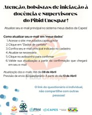 Atenção, bolsistas de iniciação à docência e supervisores do Pibid Unespar!